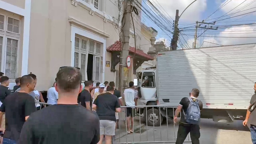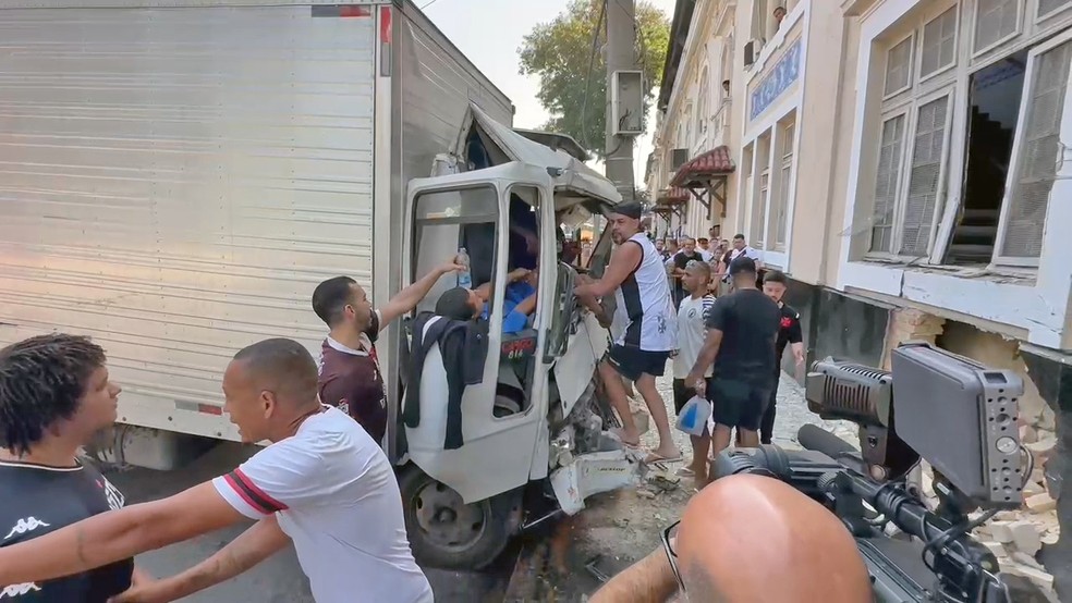 Um caminhão desgovernado foi parar na fachada do Estádio São Januário, na manhã desta quarta-feira (27), e os 3 ocupantes do veículo ficaram feridos.