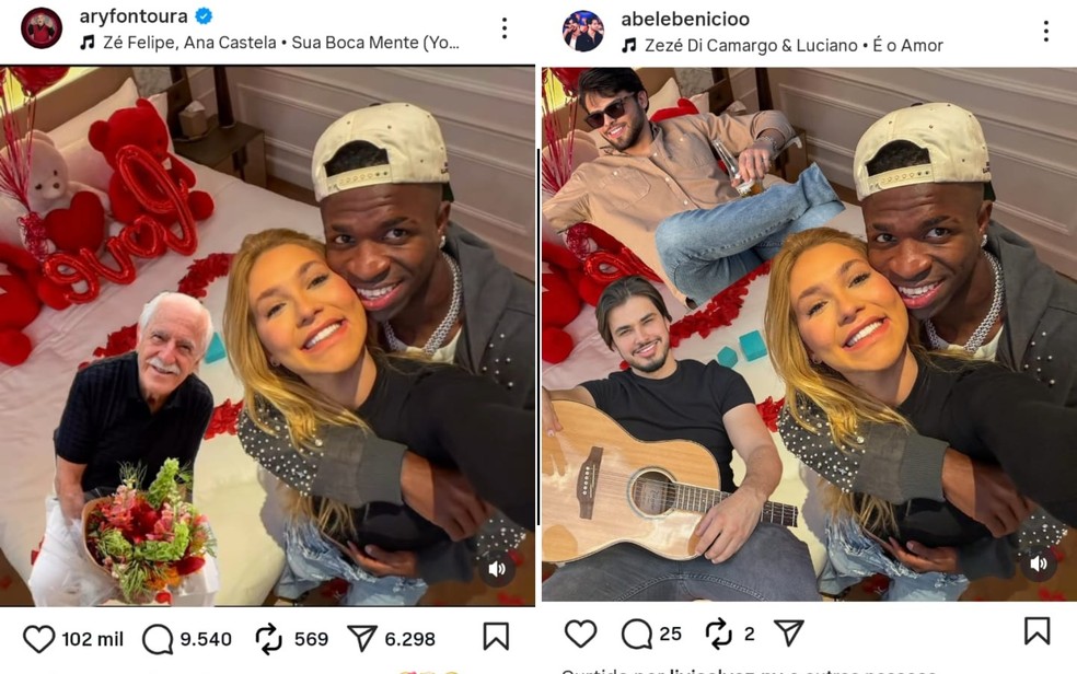 O casal assumiu o relacionamento na terça-feira (28). No Instagram, os dois publicaram uma foto juntos, e os detalhes do pedido de namoro chamaram atenção: pétalas de rosa, urso de pelúcia, balões e joias, em um quarto de hotel.
