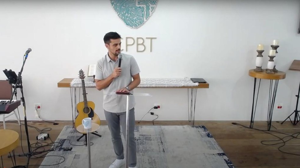 | Felipe Simas pregando em igreja — Foto: Reprodução |