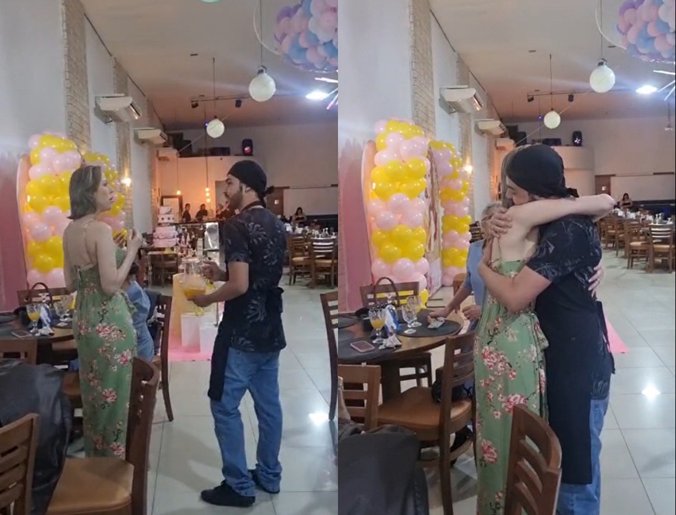 Uma mulher transplantada conheceu o próprio doador de medula óssea disfarçado de garçom em uma festa de aniversário. Ritcheli Stein, de 34 anos, reconheceu Arthur Souza Colares, que levava uma garrafa de suco, assim que ele se aproximou dela. O momento foi registrado em vídeo e viralizou nas redes sociais.