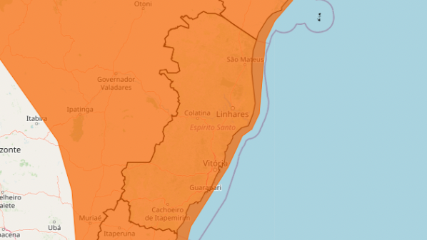 O Instituto Nacional de Meteorologia (Inmet) emitiu às 10h desta terça-feira (25) um alerta laranja de perigo para tempestade em todos os 78 municípios do Espírito Santo. O aviso vale até 10h de quarta-feira (26).