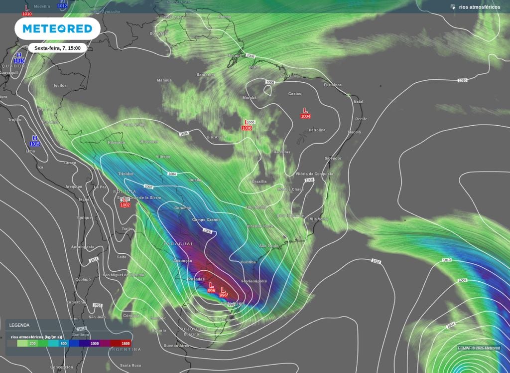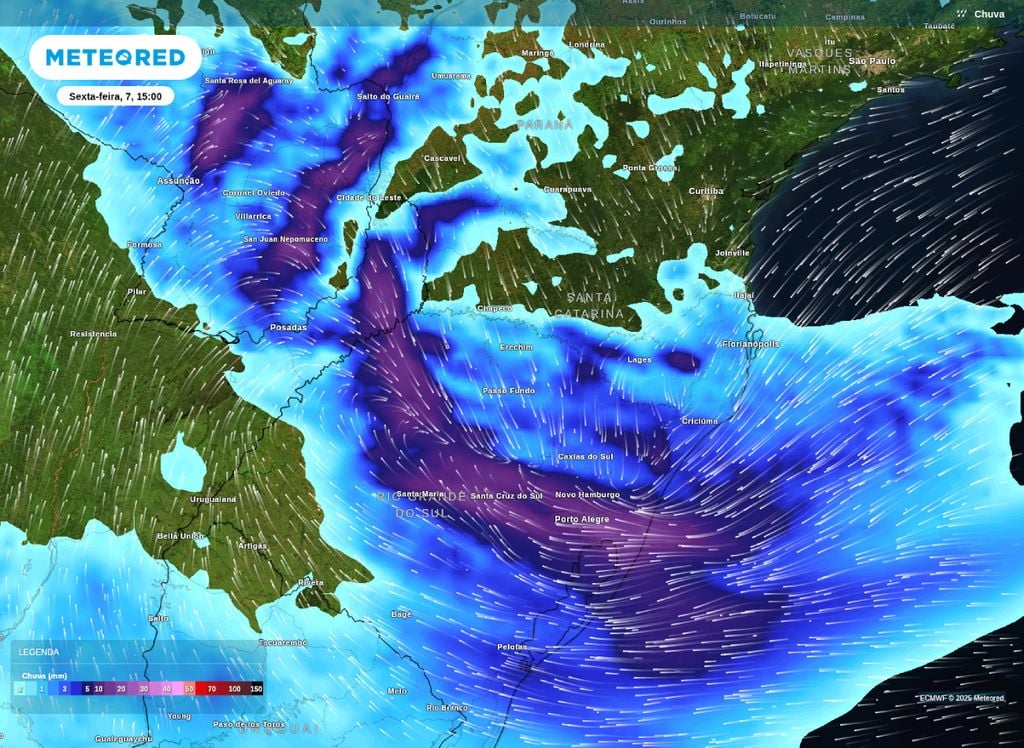 Um intenso ciclone começa a se formar no decorrer desta sexta-feira (7) sobre o Sul do Brasil, avançando gradualmente pelo país ao longo do dia e durante o sábado (8). O sistema é resultado da combinação entre forte instabilidade atmosférica e o suporte de um canal de umidade proveniente do Norte do país.