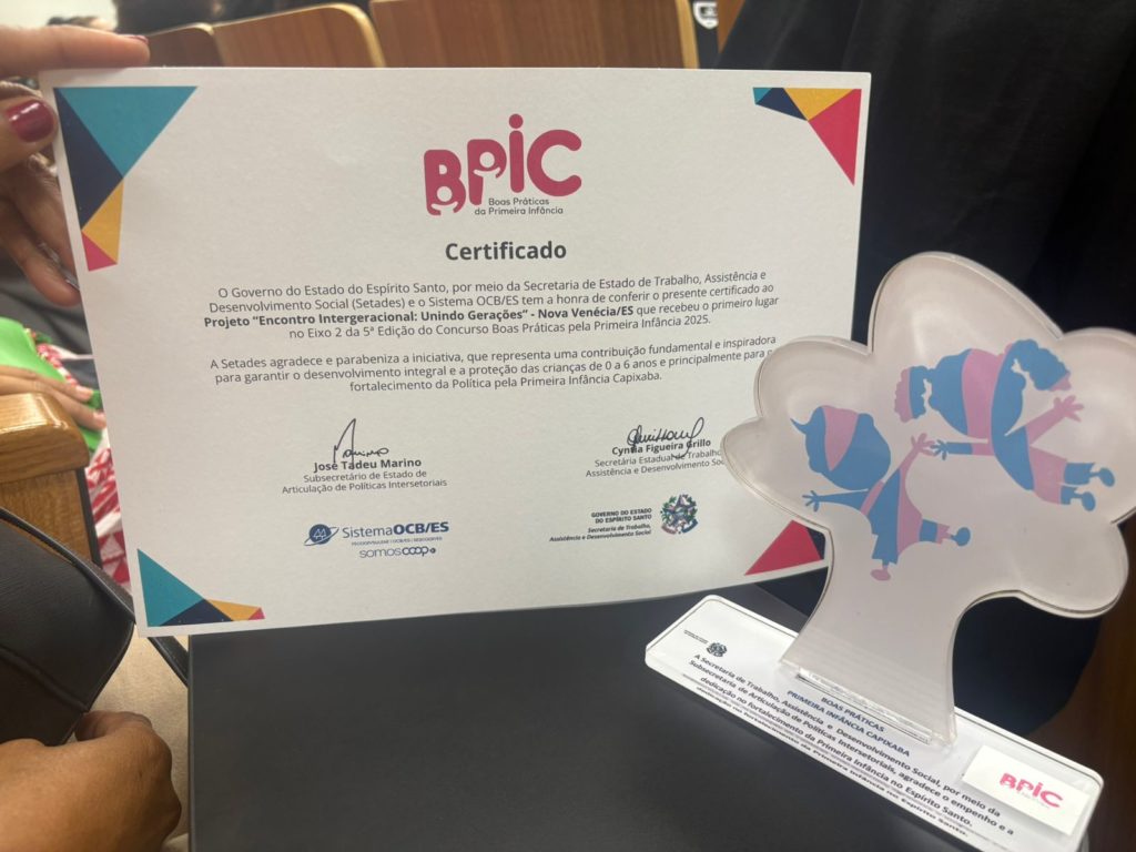 A Prefeitura de Nova Venécia, por meio da Secretaria Municipal de Assistência Social (Semas) recebeu premiação, no 5º concurso em Boas Práticas pela Primeira Infância Capixaba (BPIC) conquistando o 1º lugar no Eixo 2, com o projeto “Encontro Intergeracional: Unindo Gerações”, quarta-feira (19).