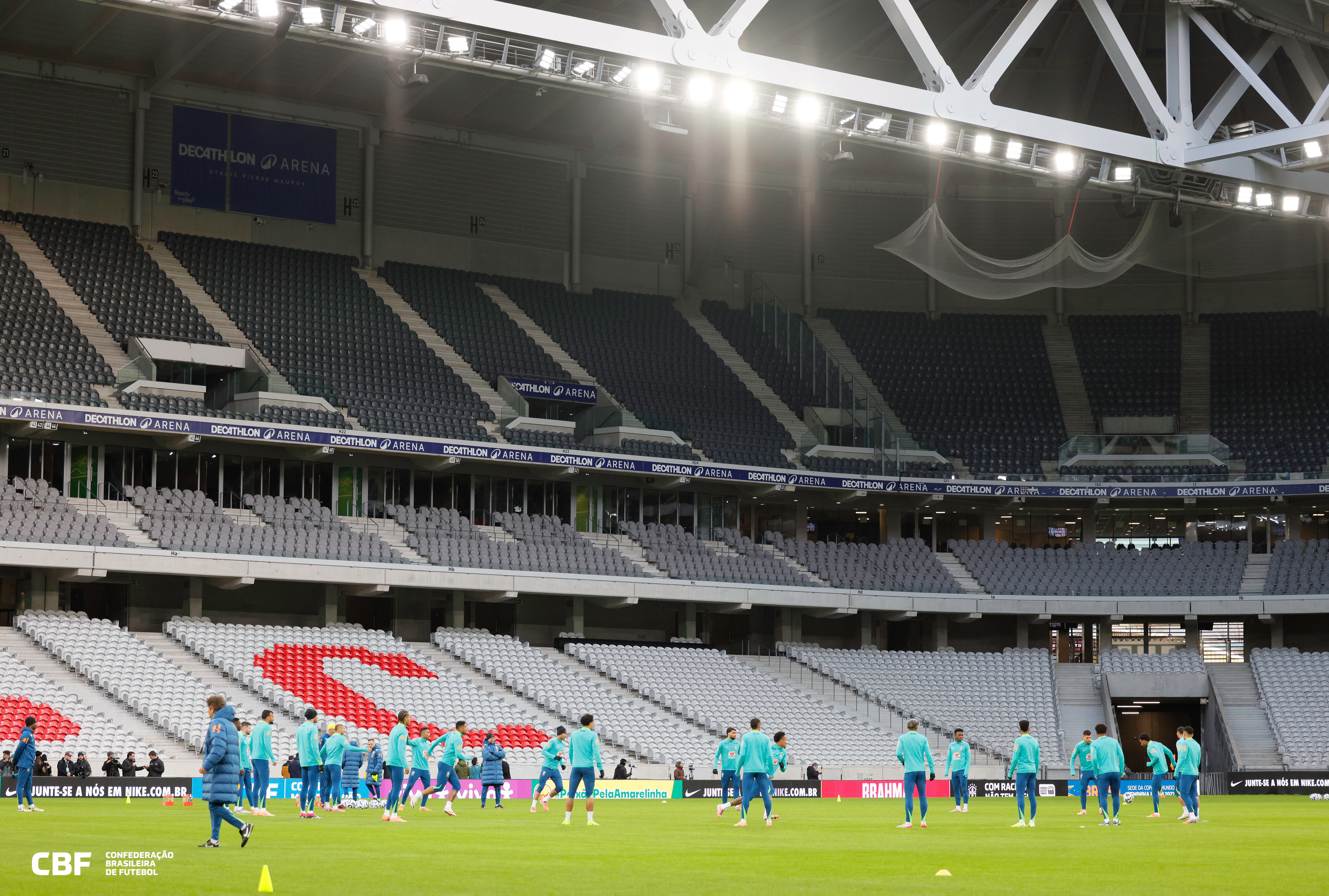 Seleção finalizou a preparação para o amistoso com a Tunísia no palco da partida, a Decathlon Arena - Créditos: Rafael Ribeiro / CBFPara este jogo, o Brasil não contará com o zagueiro Gabriel Magalhães, que lesionou o músculo adutor da coxa direita durante a vitória sobre Senegal por 2 a 0, no último sábado (15), e não seguiu com a delegação para Lille.
