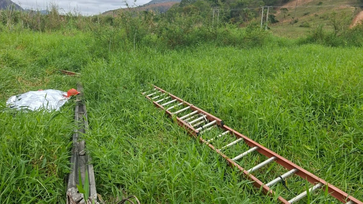 Escada utilizada pelo trabalhador e poste quebrado ficaram caídos no local do acidente Crédito: Polícia MilitarUm trabalhador de 33 anos morreu na manhã desta sexta-feira (7) após um poste quebrar e cair sobre ele enquanto realizava um serviço no bairro Vila Verde, em Pancas, Noroeste do Espírito Santo.