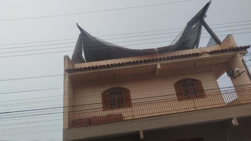 Vendaval de 30 segundos causa destelhamentos e queda de árvores em Alegre, no Sul do Espírito Santo — Foto: Redes sociais |