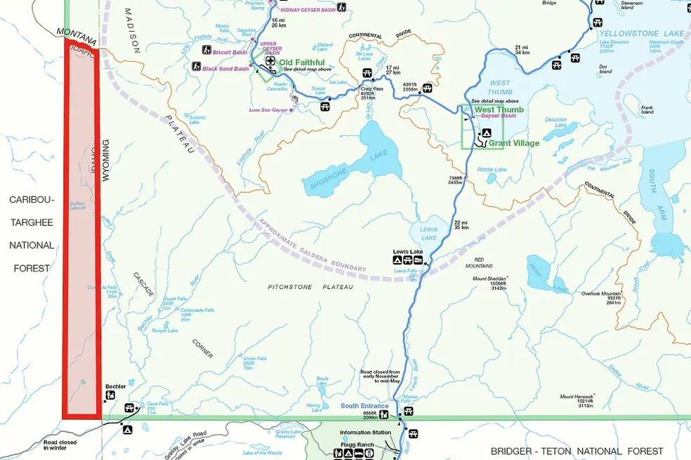 | Pequena faixa do Parque Nacional de Yellowstone em Idaho pode ser usado para cometimento de crimes por brecha legal — Foto: National Park Service |