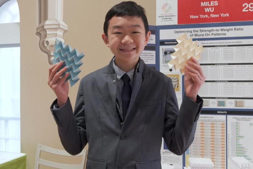 Um estudante de 14 anos dos Estados Unidos surpreendeu o mundo da ciência e da engenharia amadora ao demonstrar que um origami (dobradura de papel) era capaz de suportar mais de 10 mil vezes o peso do próprio papel. Seu projeto foi premiado com o valor equivalente a cerca de US$ 25 mil pelo concurso juvenil Thermo Fisher Scientific Junior Innovators Challenge.