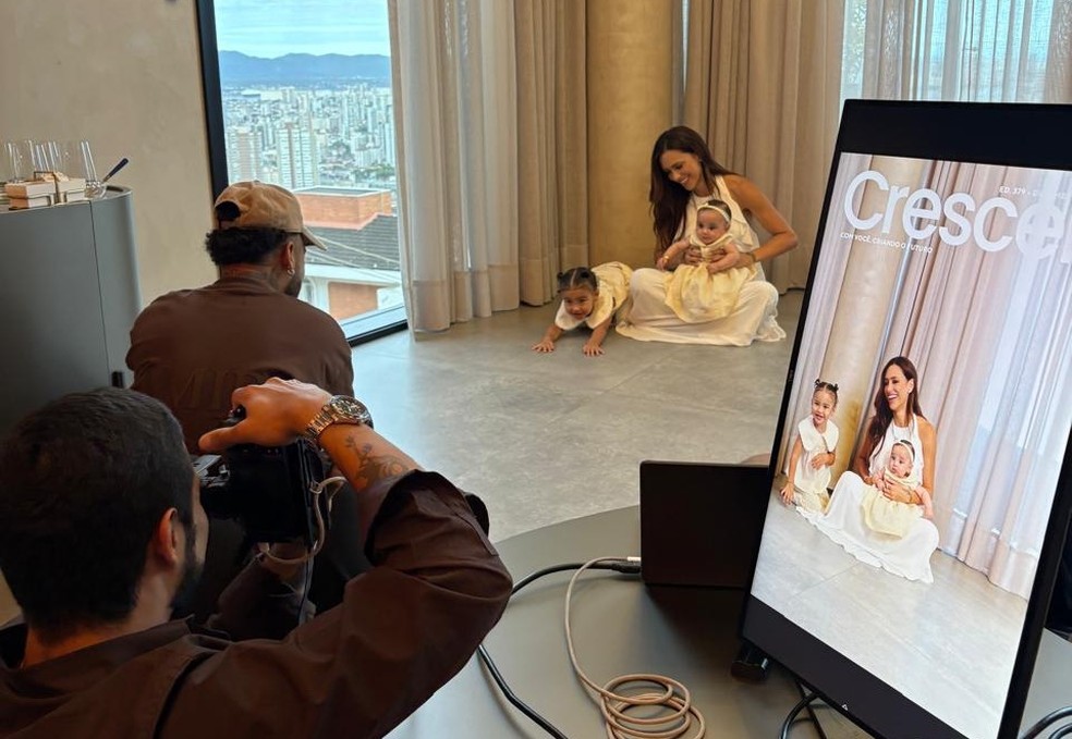 Bastidores do shooting — Foto: Reprodução/CrescerMais do que um Natal simbólico, a data representa um ponto de chegada. Entre desafios, exposições e julgamentos públicos, Bruna encontra agora um momento de serenidade, cercada pelas filhas e pela família que sempre sonhou construir — um cenário que, naquela tarde ensolarada com vista para o mar de Santos, parecia traduzir exatamente o sentimento que ela descrevia: paz e realização.