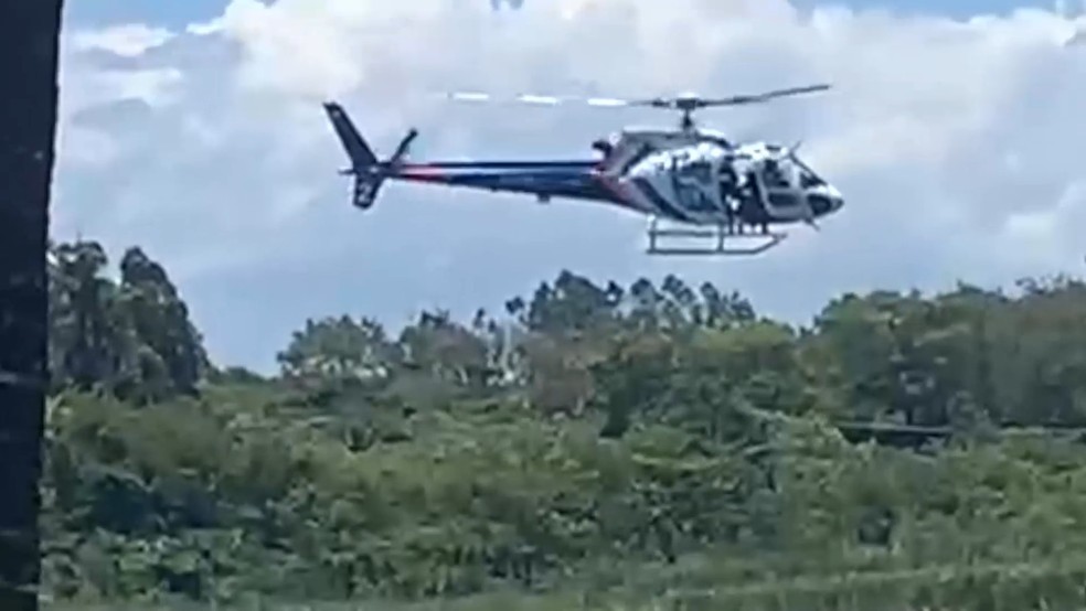 Helicóptero do Núcleo de Operações e Transporte Aéreo (Notaer) foi acionado para ajudar nas buscas por homem que abandonou família em carro ao ver fiscalização de trânsito — Foto: Reprodução/Rede social