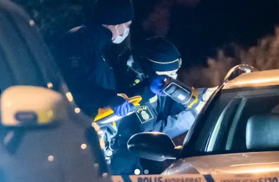 | Agentes da polícia de Malmö periciam carro alvo de ataque de assassino de aluguel de 12 anos — Foto: Reprodução |