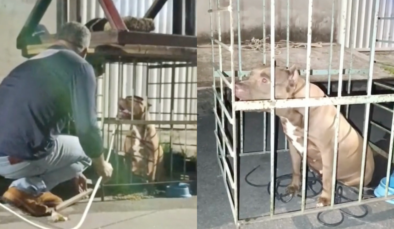 | Imagens do resgate do Pitbull/Reprodução Leitor |
