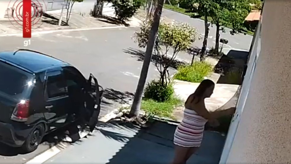 15h: o carro prata sai do local e chega a bater no portão na saída. Segundo a polícia, Grazielli dirigia.