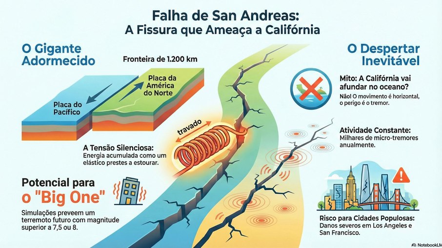 Essa instabilidade lateral ainda é perigosa, mas não significa que o estado inteiro literalmente se partirá e se afogará no oceano. Esse equívoco é mais produto de filmes e mídia sensacionalista do que de ciência.