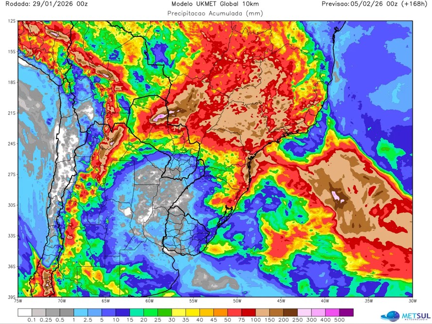 Mesmo após o fim de semana, o cenário segue instável. O boletim da MetSul aponta que no início da próxima semana, o ciclone deve continuar influenciando o tempo e favorecer a formação de um canal de umidade entre o Espírito Santo e o Mato Grosso, o que pode configurar um novo episódio de Zona de Convergência do Atlântico Sul, mantendo as chuvas ativas no começo de fevereiro.