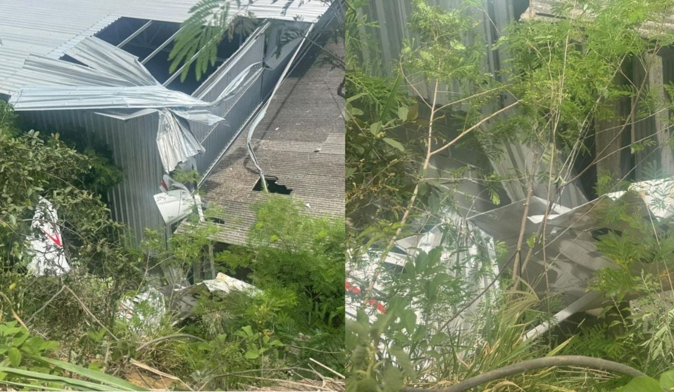 | Avião atingiu galpão de oficina (Foto: Lucas Henrique Pisa / TV Vitória) |