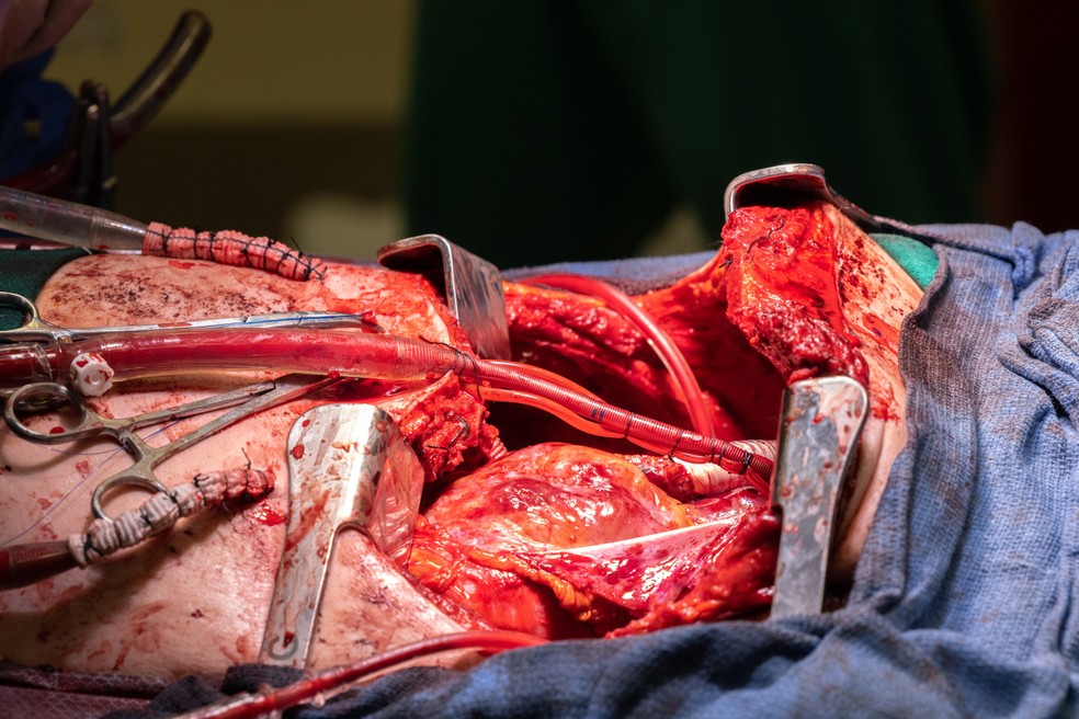 A equipe então tomou uma decisão extrema: realizar uma pneumonectomia bilateral — a retirada completa dos dois pulmões — para eliminar a fonte da infecção, mesmo sabendo que isso cria um desafio fisiológico enorme. Já que, sem pulmões, o coração perde o “amortecedor” natural da circulação pulmonar, o que pode levar ao colapso do ventrículo direito, queda abrupta da pressão arterial e parada circulatória em questão de minutos.