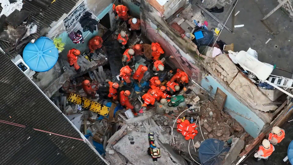 “Estamos com vários bombeiros militares atuando aqui, distribuídos em sete unidades, incluindo o Grupamento de Operações Especiais. No total, eram duas casas, cada uma com quatro pavimentos. As estruturas colapsaram e desabaram como se fossem panquecas. Neste momento, localizamos as duas vítimas que ainda faltavam: uma menina e uma mulher adulta. Até agora, a mãe não responde aos nossos comandos, mas, em ocorrências desse tipo, é muito comum encontrarmos vítimas inconscientes”, disse o major Fábio Contreiras, porta-voz do Corpo de Bombeiros.