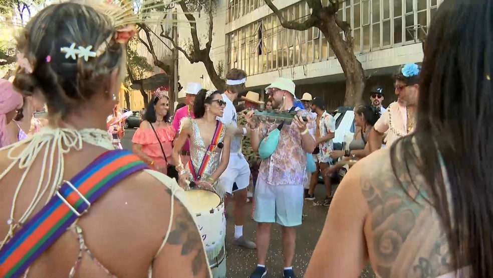 Toda a movimentação chamou a atenção de quem viu o bloco passar, como foi o caso da técnica em saneamento, Herminia Tagliscarne, paulista de Jundiaí que visitava o Centro quando ouviu a bateria e decidiu acompanhar o grupo.