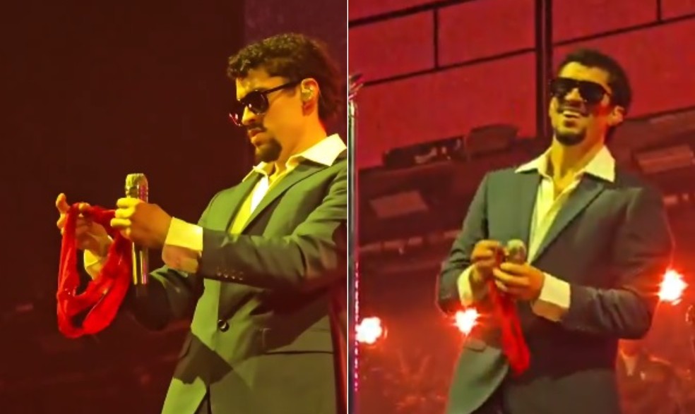 Bad Bunny recebe calcinha de fã no meio de show — Foto: Reprodução/X