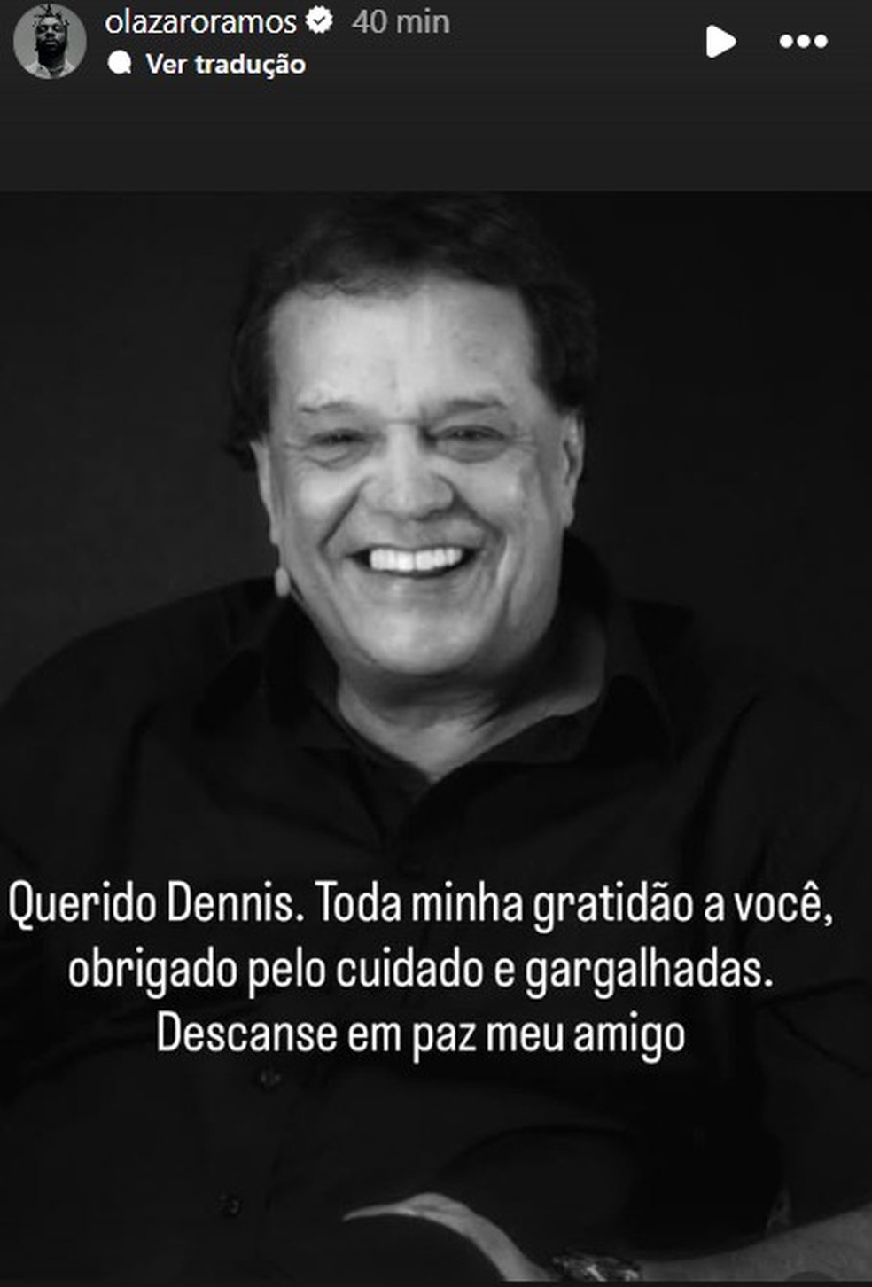 O ator fez um story no Instagram com a seguinte mensagem: "Querido Dennis, toda minha gratidão a você, obrigado pelo cuidado e gargalhadas. Descanse em paz, meu amigo".