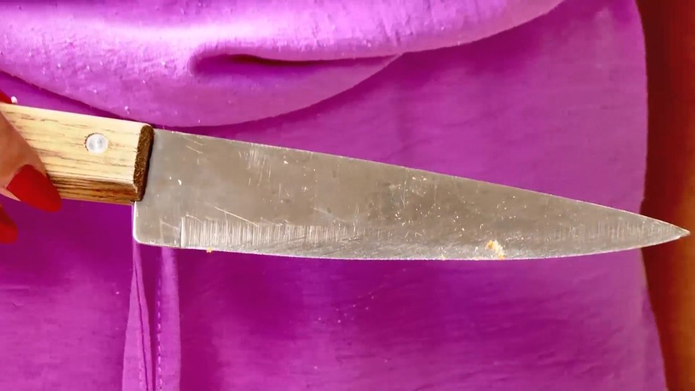 Mulher foi ameaçada pelo marido com uma faca no Espírito Santo — Foto: Reprodução/TV Gazeta