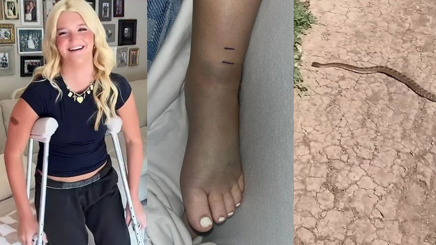 Montagem com Bailey Vanden Bossche e sua perna machucada — Foto: Reprodução/CBS NewsUma adolescente de 14 anos ficou entre a vida e a morte após ser picada por uma cascavel enquanto andava de bicicleta com uma amiga em uma trilha na Califórnia, nos Estados Unidos. O caso ocorreu no dia 20 de março, na trilha Wendy, em Newbury Park, no condado de Ventura.