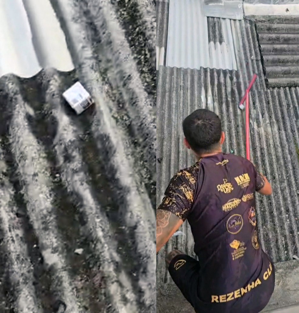 Caixa de caneta foi jogada pelo telhado — Foto: Reprodução/TV Globo
