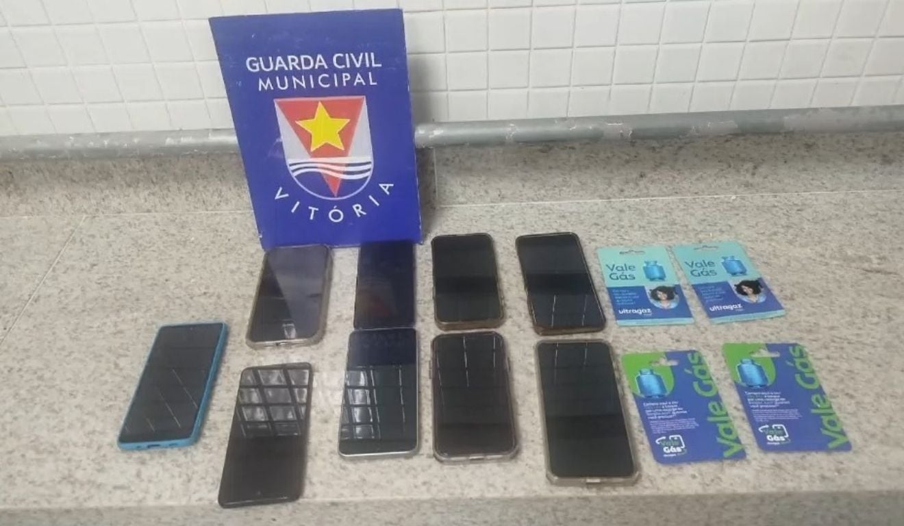 Durante a abordagem, foram encontrados nove aparelhos celulares e quatro cartões de benefício de vale-gás.