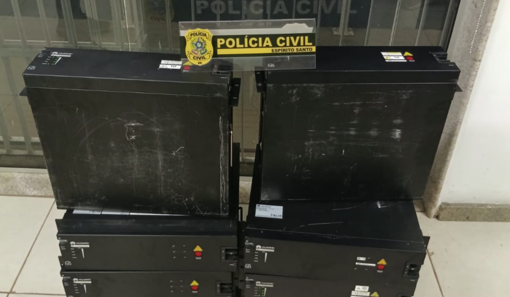 (Foto: SESP/Polícia Civil)Oito baterias de lítio furtadas de estações de telefonia móvel foram recuperadas durante uma ação da Polícia Civil realizada no município de Viana. Os equipamentos estão avaliados em aproximadamente R$ 64 mil. Um homem, de 45 anos, foi preso em flagrante no momento em que tentava revender os equipamentos.