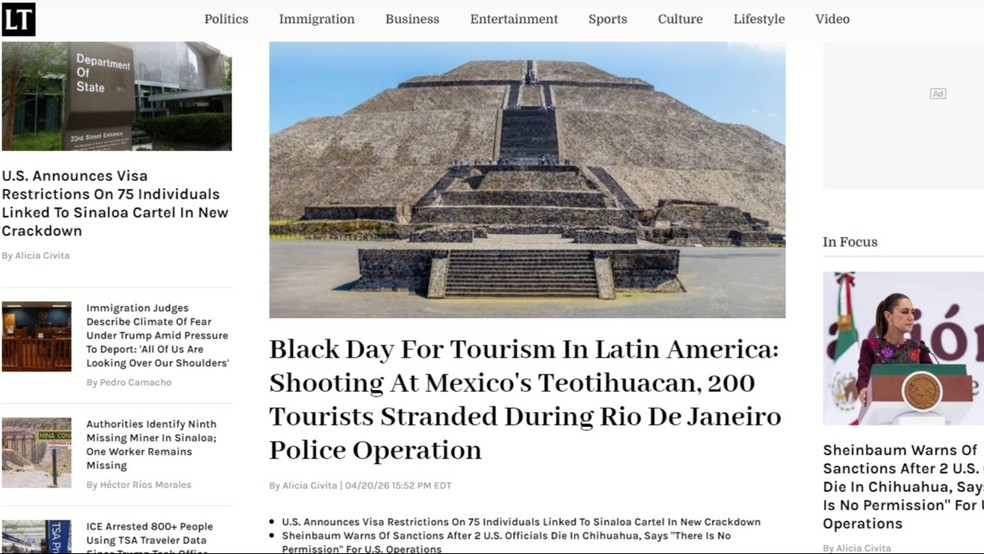 Outro veículo dos Estados Unidos, o The Latin Times, abordou o caso sob a perspectiva do impacto da violência sobre o turismo na América Latina.
