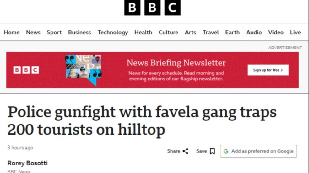 Imprensa internacional repercute operação contra o CV no Vidigal que deixou 200 turistas isolados — Foto: Reprodução BBC