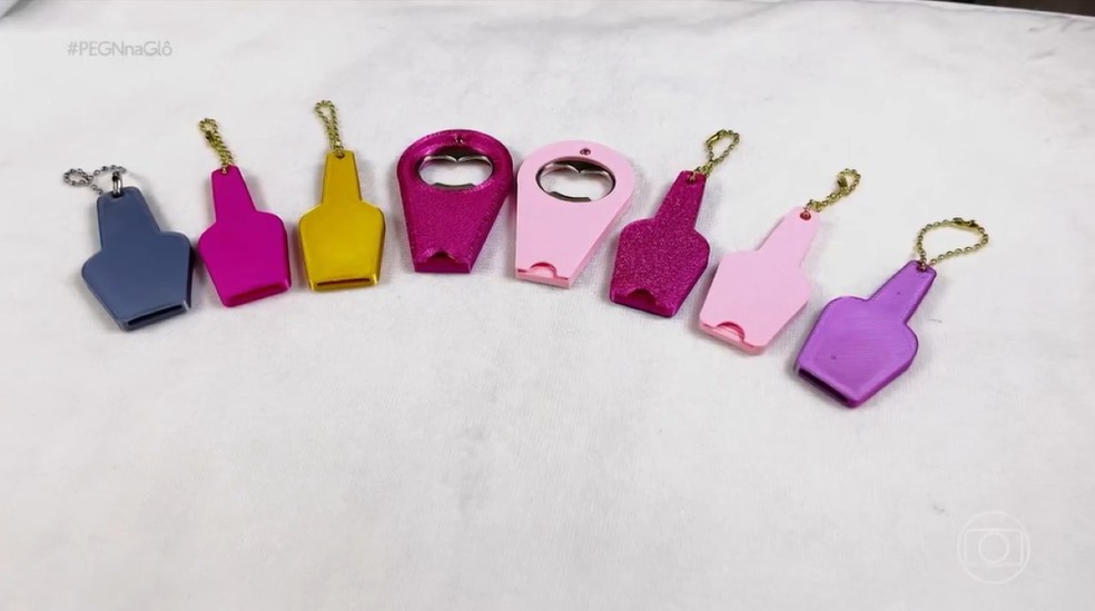 A ideia nasceu dentro do próprio salão. Karina queria oferecer um brinde diferente para as clientes no fim de ano e lembrou de um modelo de abridor de latas. Com a ajuda do namorado, que tinha uma impressora 3D, começou a desenvolver um acessório em formato de esmalte — pensado para preservar as unhas.
