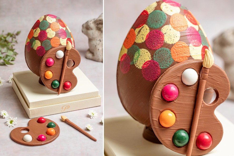 A doceria Pati Piva vende, nesta Páscoa, o Ovo Decorado GG, de 1,8 kg, por R$ 680. O ovo é meio chocolate ao leite recheado com brigadeiro cremoso, meio chocolate ao leite com recheio crocante. É decorado com efeito de "pinceladas".