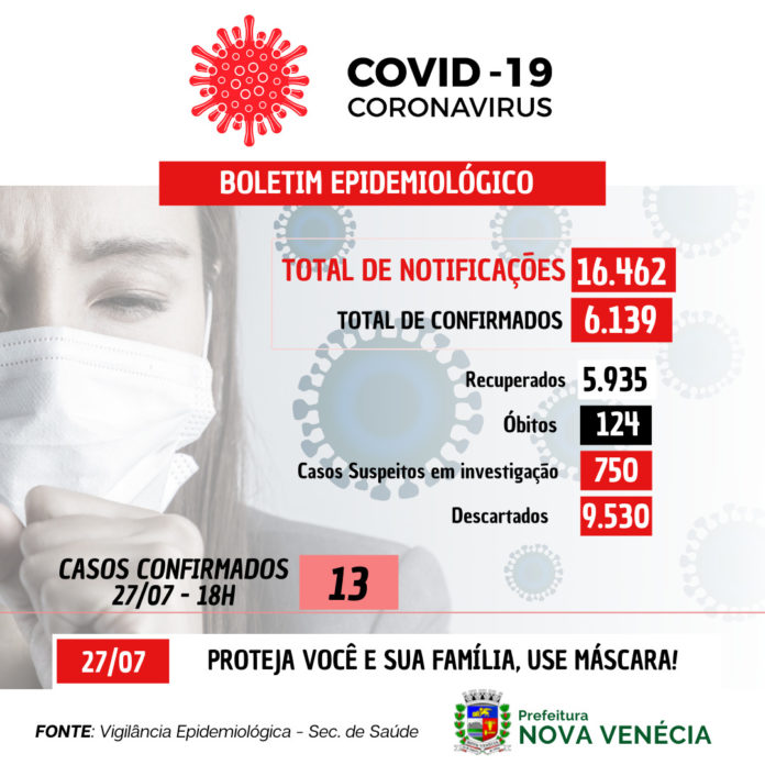 Com 16.462 notificações até o momento, desde o início da pandemia, Nova Venécia contabiliza 6.139 casos confirmados. Atualmente, 750 casos suspeitos estão em investigação, 9.530 investigações foram concluídas, 124 óbitos confirmados e 5.935 pessoas recuperadas.