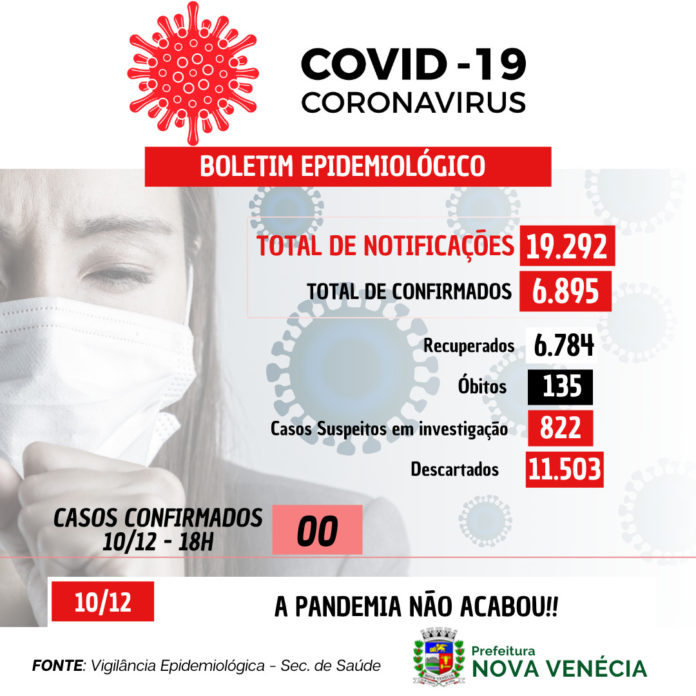 Com 19.292 notificações até o momento, desde o início da pandemia, Nova Venécia contabiliza 6.895 casos confirmados, 6.784 pessoas recuperadas, 135 óbitos confirmados. Atualmente 822 casos suspeitos estão em investigação e 11.503 investigações foram concluídas.