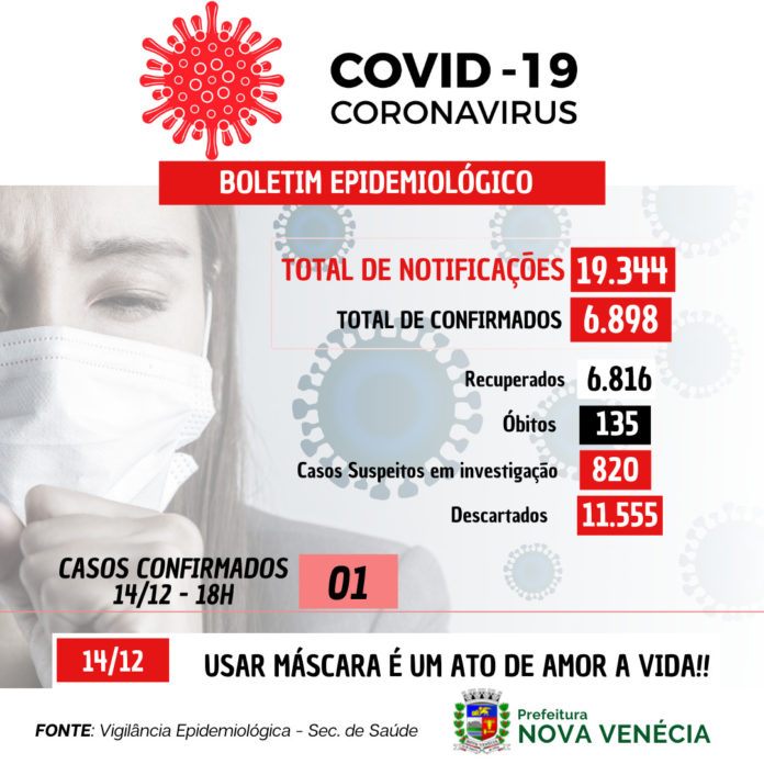 Com 19.344 notificações até o momento, desde o início da pandemia, Nova Venécia contabiliza 6.898 casos confirmados, 6.816 pessoas recuperadas, 135 óbitos confirmados. Atualmente 820 casos suspeitos estão em investigação e 11.555 investigações foram concluídas.