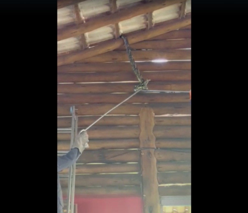 Uma cobra de cerca de 4 metros foi encontrada na cobertura de um restaurante na BR-101, em Itabuna, no sul da Bahia, neste domingo (30). Funcionários do local viram o animal e acionaram o Corpo de Bombeiros.