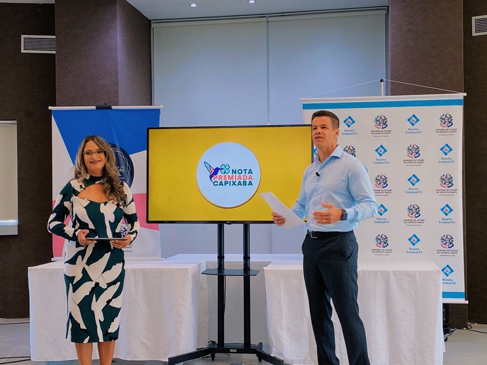 O programa Nota Premiada Capixaba realizou seu primeiro sorteio, nesta quinta-feira (20), às 13h30, com transmissão ao vivo pela TV Educativa do Espírito Santo (TVE-ES). A apresentação ficou por conta da jornalista Verônica Salazar e do gerente de Arrecadação e Cadastro, da Secretaria da Fazenda (Sefaz), Thiago Venâncio (clique AQUI para assistir).