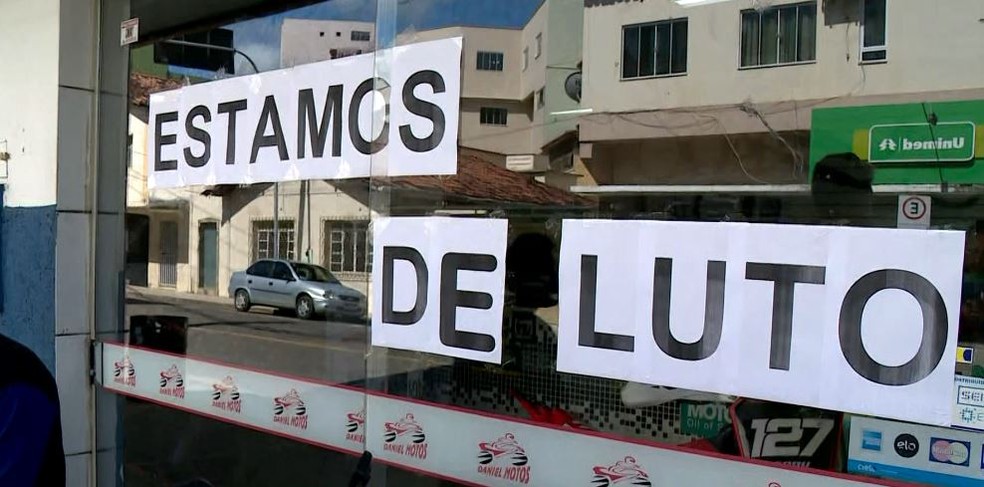 Daniel tinha uma loja de produtos para motociclistas em Nova Venécia e faixas de luto foram colocadas no estabelecimento.