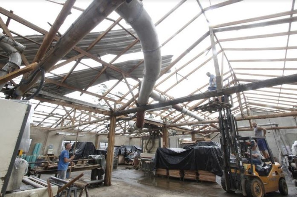 "O bairro mais atingido foi o Industrial, onde tivemos muitos destelhamentos em galpões, telhas foram arremessadas a quase 200 metros de distância", disse o coordenador da Defesa Civil do município, Fabio Melere.