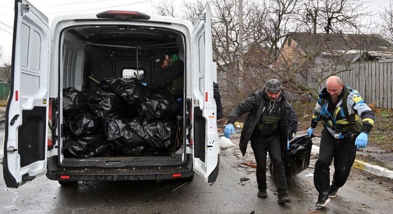 Quando as forças ucranianas retomaram o controle da localidade, vários corpos de civis foram encontrados nas ruas de Bucha.