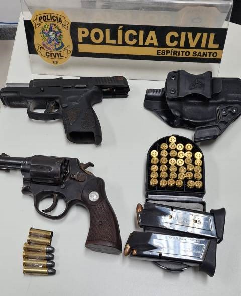 Durante as diligências, os policiais conseguiram apreender no interior da residência do comerciante um revólver calibre. 38, seis cartuchos do mesmo calibre, uma pistola 9mm registrada, com 59 cartuchos do mesmo calibre e um coldre velado.