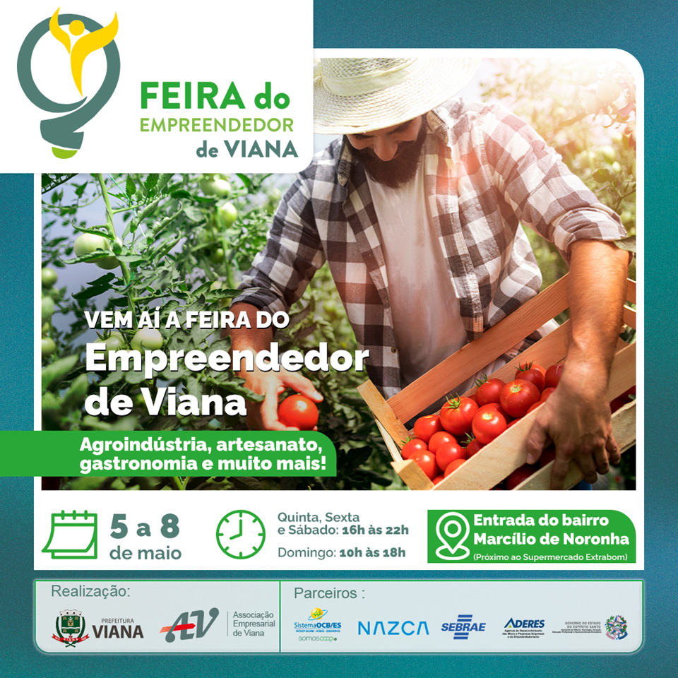 A Feira de Empreendedores é uma realização da Associação Empresarial de Viana, em parceria com a Prefeitura do município e o apoio do Serviço Brasileiro de Apoio às Micro e Pequenas Empresas (Sebrae) e do Governo do Estado, por meio da Agência de Desenvolvimento das Micro e Pequenas Empresas do Espírito Santo (Aderes).