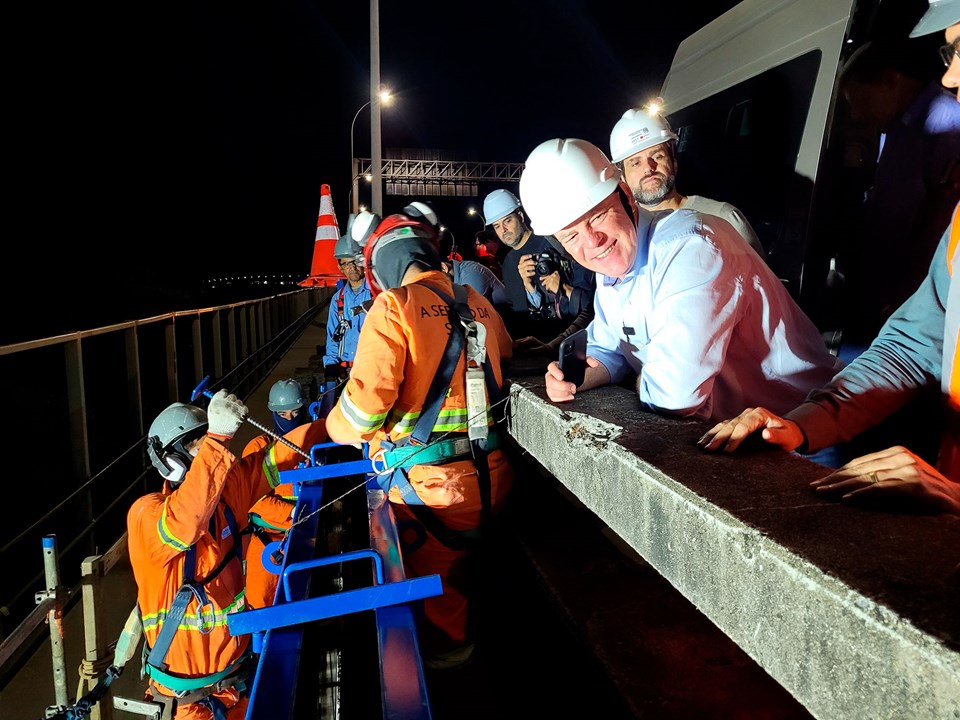 "Do percentual que falta a ser executado em relação à ciclovia, praticamente, temos o trecho do vão central da ponte e os acessos nos dois sentidos. A obra como um todo caminha conforme o planejado, numa obra que é desafiadora", completou o secretário de Estado de Mobilidade e Infraestrutura, Fábio Damasceno.