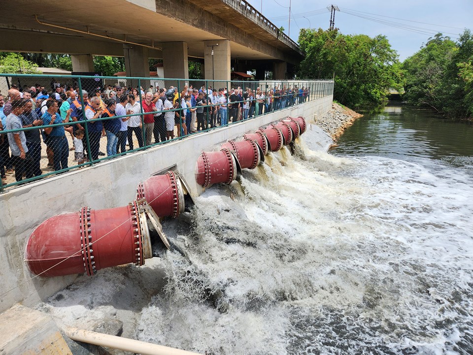 O governador do Estado, Renato Casagrande, realizou, na manhã deste sábado (17), a Estação de Bombeamento de Águas Pluviais (EBAP) Marinho, no município de Cariacica. Com investimento de R$ 42,5 milhões, o equipamento terá capacidade de bombeamento de 72 milhões de litros/hora por meio de oito bombas, podendo ter a sua capacidade ampliada para 81 milhões de litros/hora, auxiliando a drenagem das águas da bacia do Rio Marinho. Cerca de 100 mil habitantes serão beneficiados com o investimento.