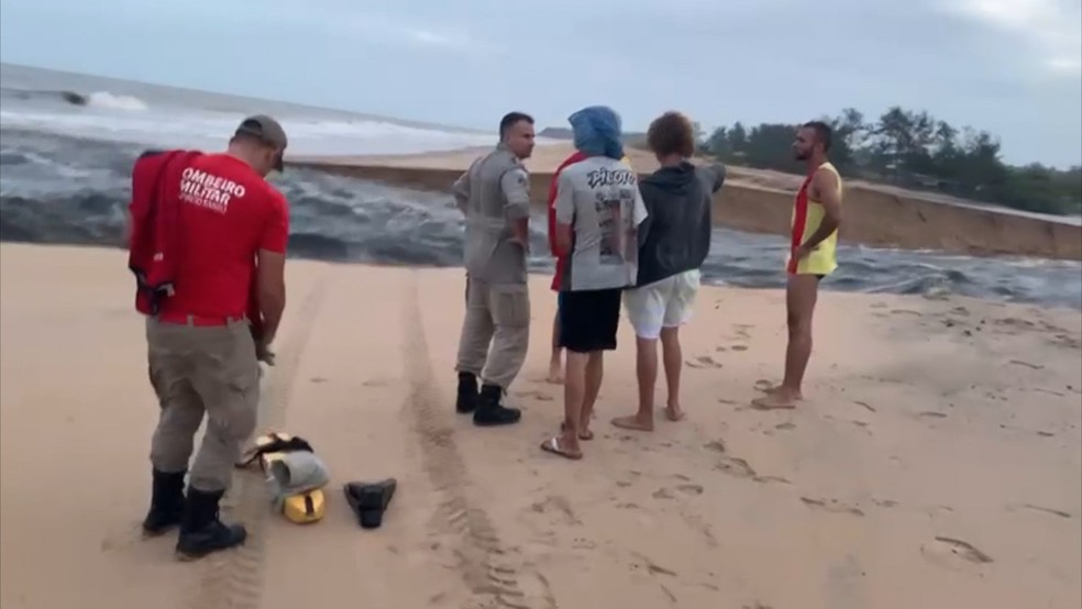 Jovem morre afogado em praia de Marataízes — Foto: Reprodução TV Gazeta |