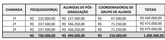 O investimento da Fapes é de R$ 1.400.000,00, oriundos do Fundo Estadual de Ciência e Tecnologia do Espírito Santo (Funcitec) e serão distribuídos da seguinte forma: