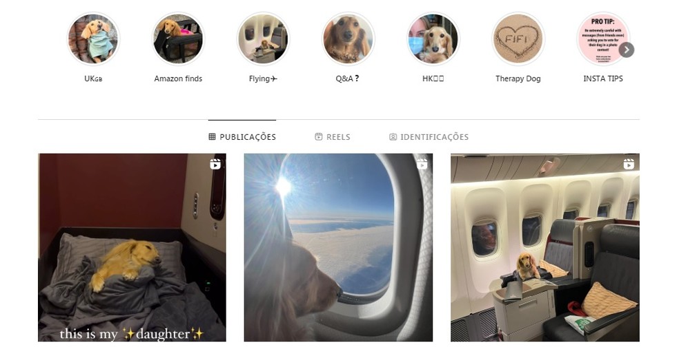 No Instagram, Fifi tem 16,7 mil seguidores. Nos posts da rede social, é possível ver o pet dormindo no voo, em meio a travesseiros e cobertores. Também há imagens de a cadelinha vendo a paisagem pela janela e circulando no aeroporto de Istambul, cidade em que o avião fez conexão.