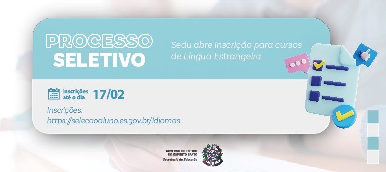 A Secretaria da Educação (Sedu) abriu, nesta segunda-feira (06), o período de inscrição para os cursos de Língua Estrangeira ofertados pelos Centros Estaduais de Idiomas (CEI’s) no ano letivo de 2023. As inscrições para o processo seletivo devem ser realizadas até o dia 17 de fevereiro, exclusivamente, pela internet: CLIQUE AQUI. As aulas terão início no dia 13 de março.